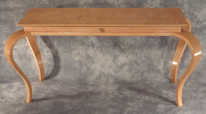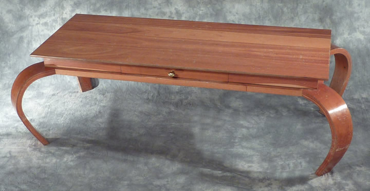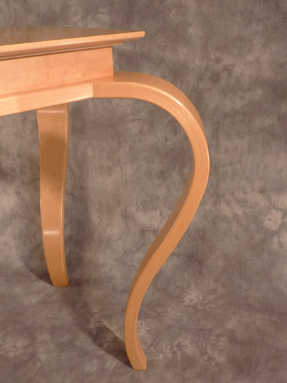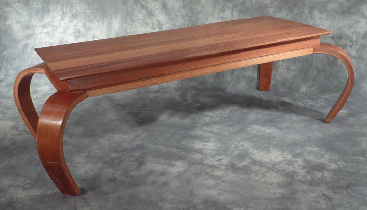 Gaining the knowledge that building individual molds for each component of every furniture design was costly and time consuming, lead me to the challenge of designing one mold that could be used for multiple applications. The Queen Ant and Sumo Tables resulted from the quest to develop a leg that could be used in a variety of table configurations. The leg evolved into a graceful curve, that at full height is reminiscent of a traditional Queen Anne style leg and, when cut shorter, tends more toward Chinese styling. With this leg design, changing the size of the desired table becomes limitless.